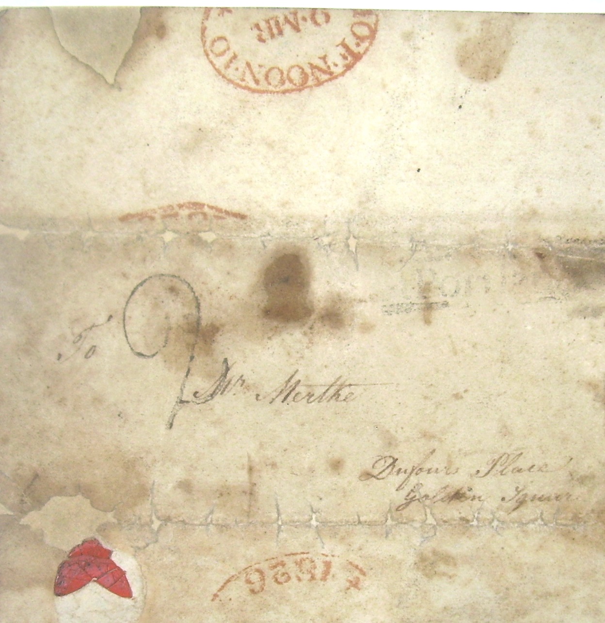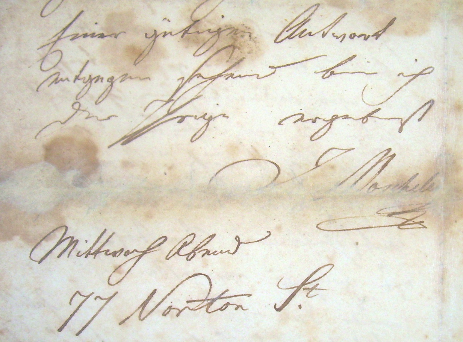 Eigenhändiger Brief mit Unterschrift, Adresse, Poststempel London 09.03.1826 - an den Fagottisten Ernst Wilhelm Mertke (1783-1854).