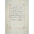 27x19 cm, Musikmanuskript "Moderato": 7 Takte Klaviersatz D-Dur, vollständige Komposition. - Auf zweifärbig vorgedrucktem Albumblatt mit 7 blauen Notenlinien und dekorativer roter Bordüre. Stockfleckig, verso an den Rändern Montagespuren. Am unteren Querrand späterer blasser handschriftlicher Vermerk in Bleistift " Siehe Walter Manualbuch".