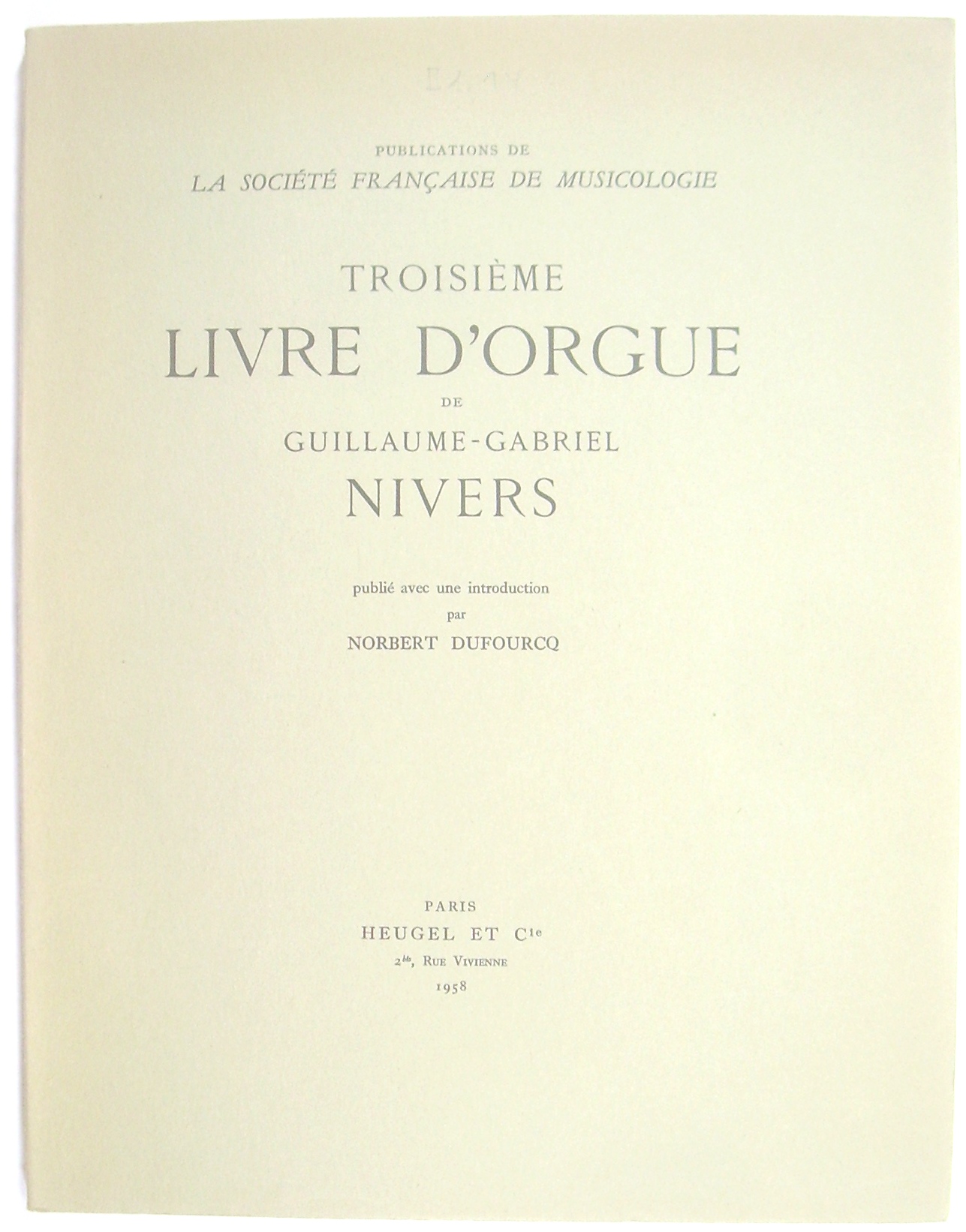 Troisième Livre d'orgue, publié avec und introduction par Norbert Dufourcq.