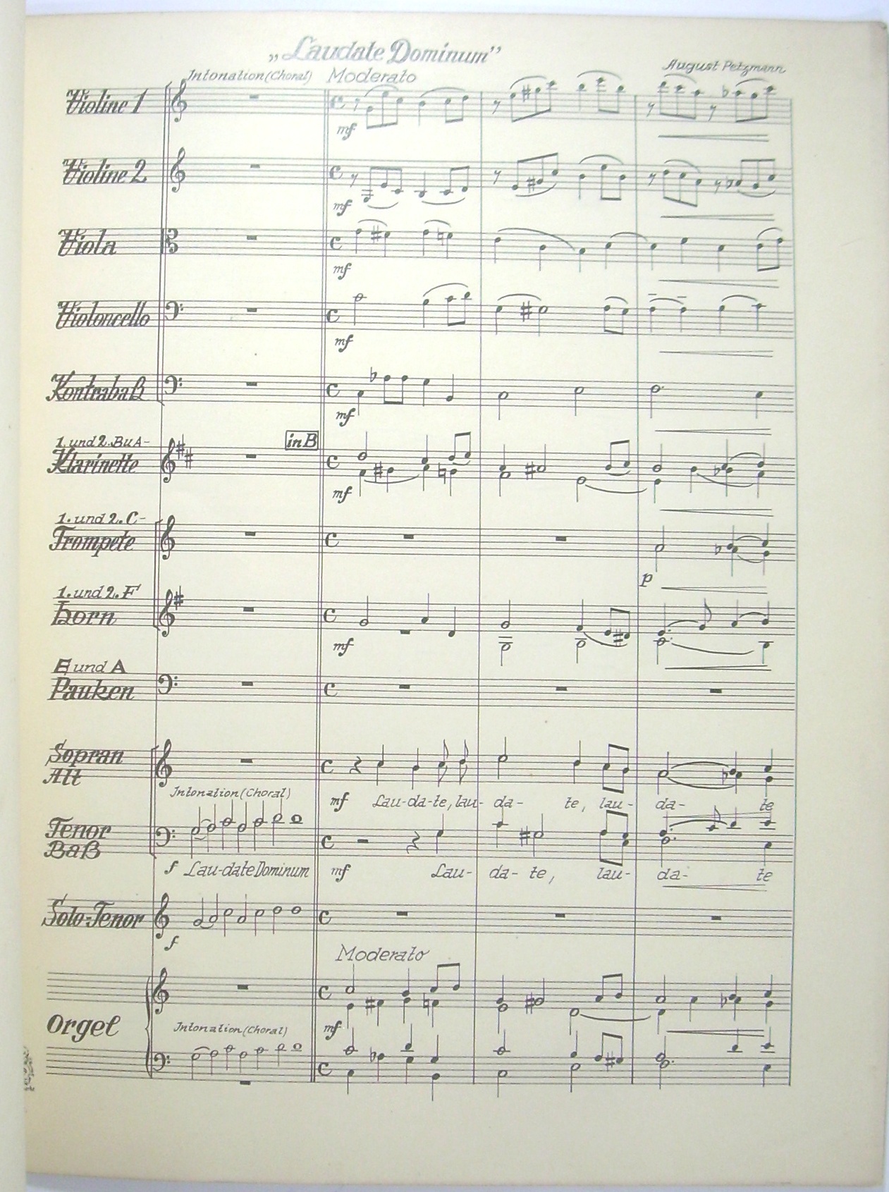 Laudate Dominum, für Tenor, gemischten Chor, Streichquartett, 2 Klarinetten, 2 Trompeten, 2 Hörner und Orgel. [Musikmanuskript, Autograph, Widmungsexemplar].