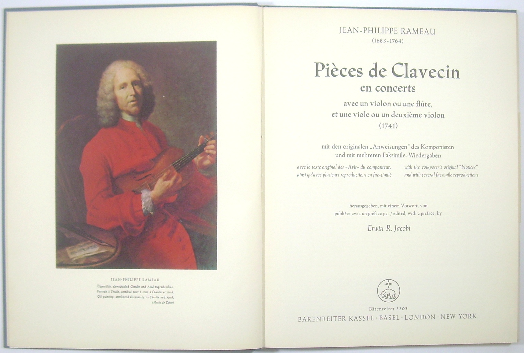 Vollständige Ausgabe. 6 Konzerte (Suiten) für Cembalo, Violine (Flöte) Viola da gamba (Violine) oder für Cembalo allein (Texte deutsch/englisch/französisch). Mit den originalen Spielanweisungen und Verzierungstabellen Rameaus sowie mehreren Faksimile-Wiedergaben.