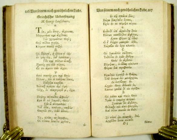 16x10 cm, 5 Bl., 331 Seiten. Mit Titelvignette, ohne das gestochene Porträt. Pappband der Zeit, beschabt und bestoßen. Seiten mit vereinzelten Unterstreichungen, sonst sehr sauber.
