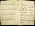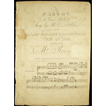 33x24 cm, 4 Seiten gestochen Wasserzeichen 180? (letzte Ziffer unleserlich), ausgebunden, Rückenfalz alt hinterlegt, Papier gebräunt, fleckig, rissig. Gesang und Klavier auf 3 Systemen, 4. Seite mit 2. und 3. Strophe.