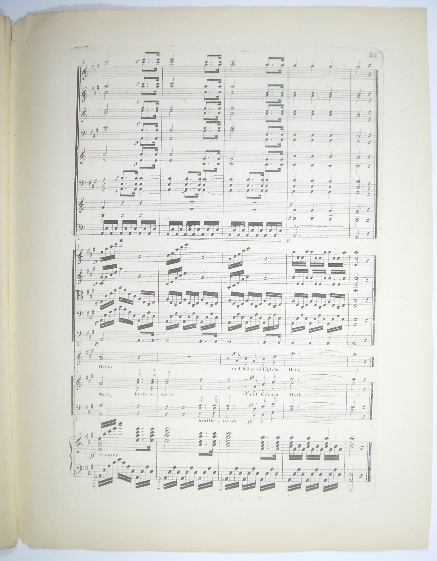 35x26 cm, 39 Seiten gestochen. 2 Leerseiten zwischen Titel und erster Notenseite. - Beilagen: 7, 19, 19 Seiten.