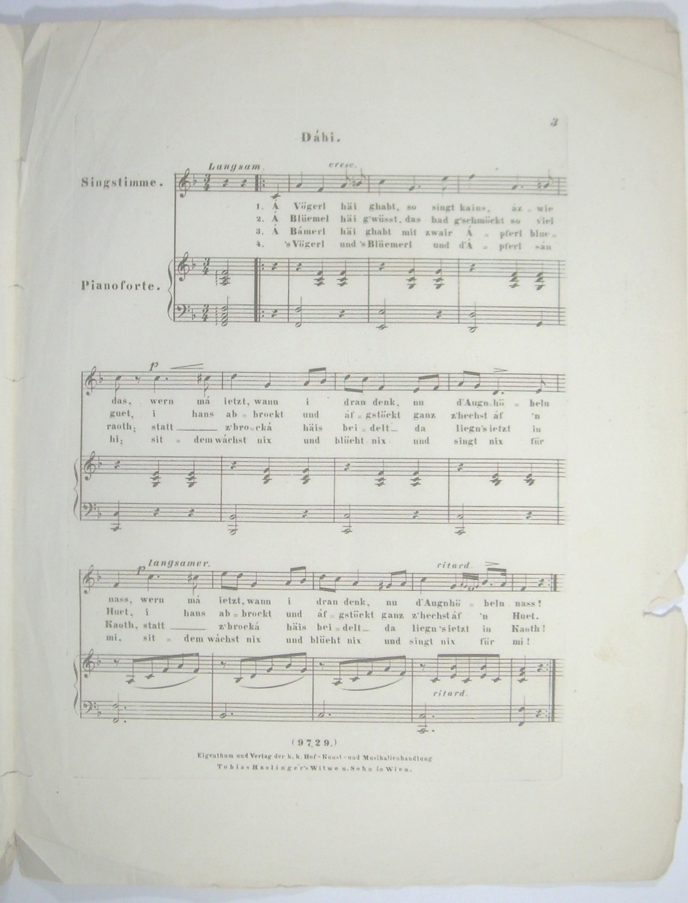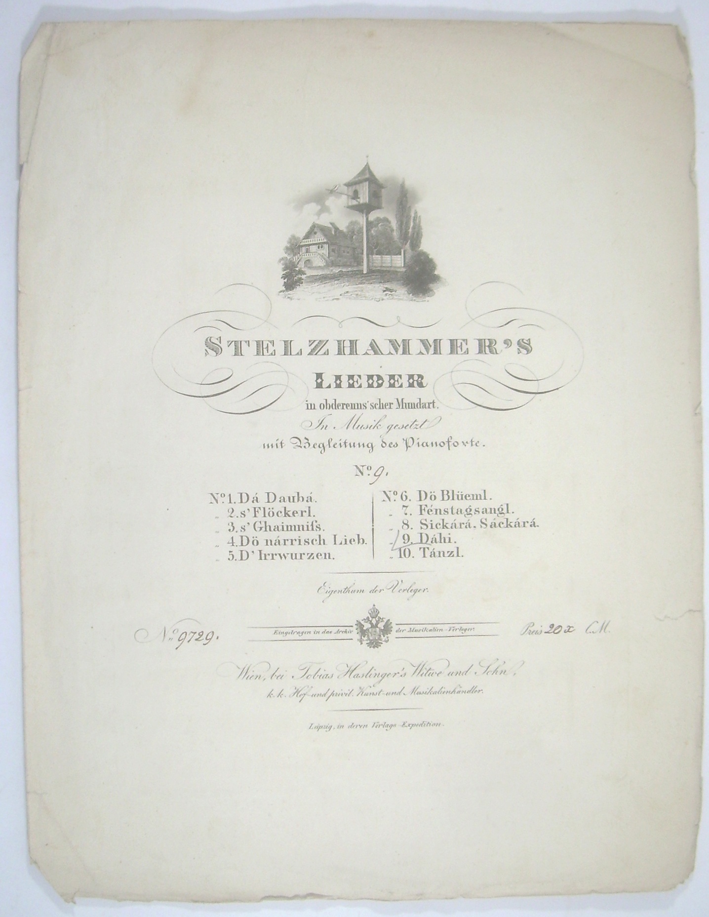 Stelzhammer's Lieder in obderenns'scher Mundart in Musik gesetzt mit Begleitung des Pianoforte. No. 9. Dáhi.