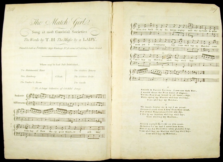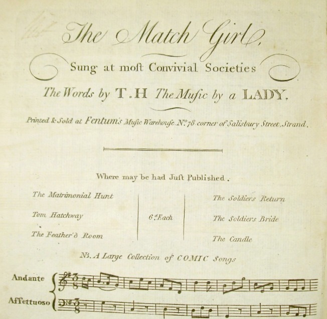 The Match Girl. Sung at most Convivial Societies. The words by T. H. The music by a Lady.